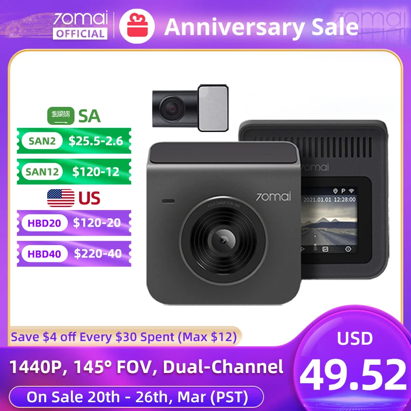 #70mai Dash Cam A400 Car DVR 145° FOV 1440P R[…]