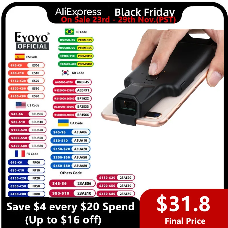 Eyoyo 2D Phone Back Clip Bluetooth Barco[…]