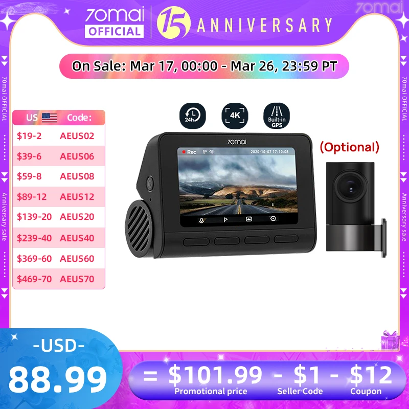#70Mai 4K Dash Cam A800S Built-in GPS AD[…]