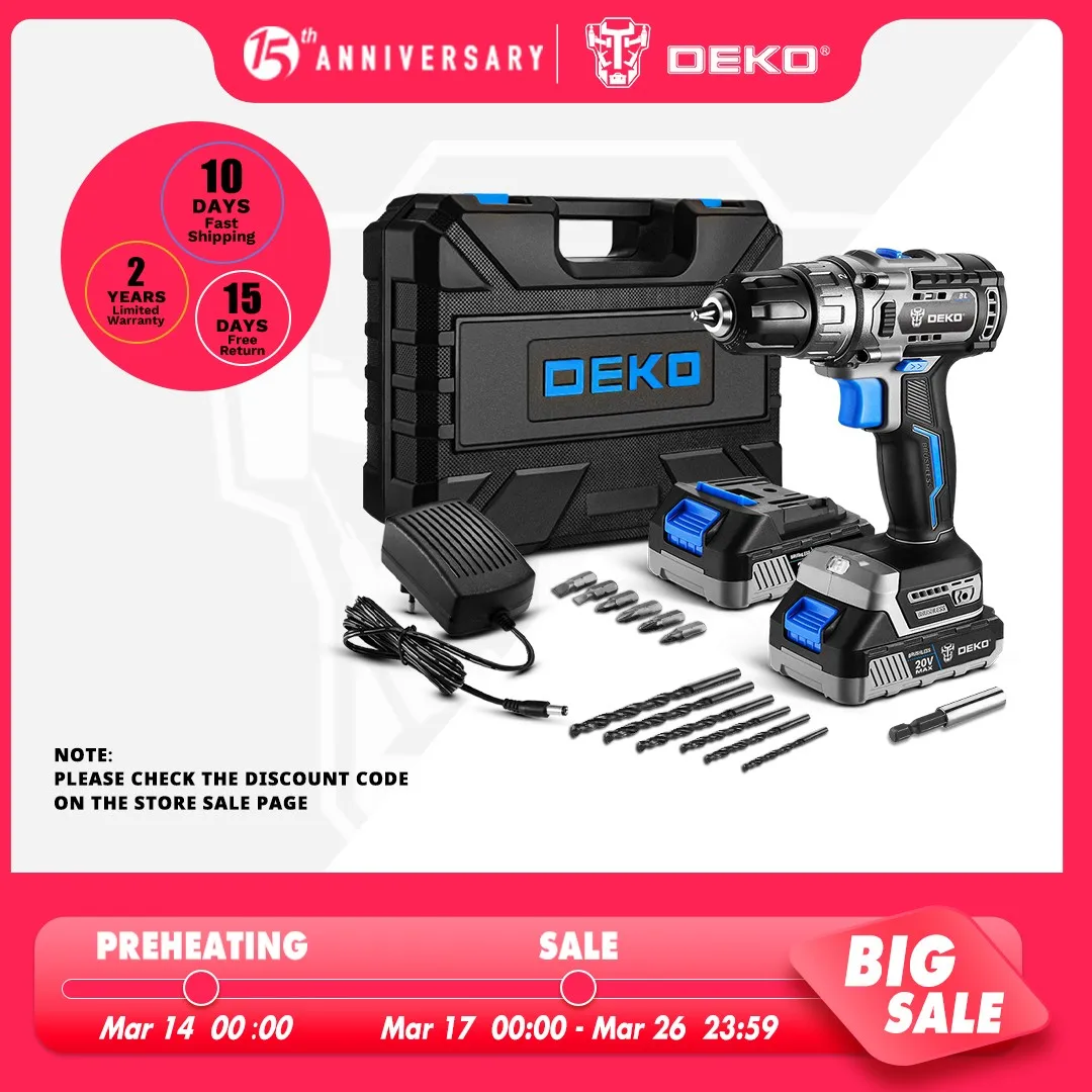 #Deko 20V Brushless Cordless Drill Combo[…]